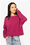 Overlocksteek aan de halsopening, aan de schoudernaden, aan de armsgaten en aan de mouwuiteinden 2 x 1 rib boord in de kraag en de mouwuiteinden.